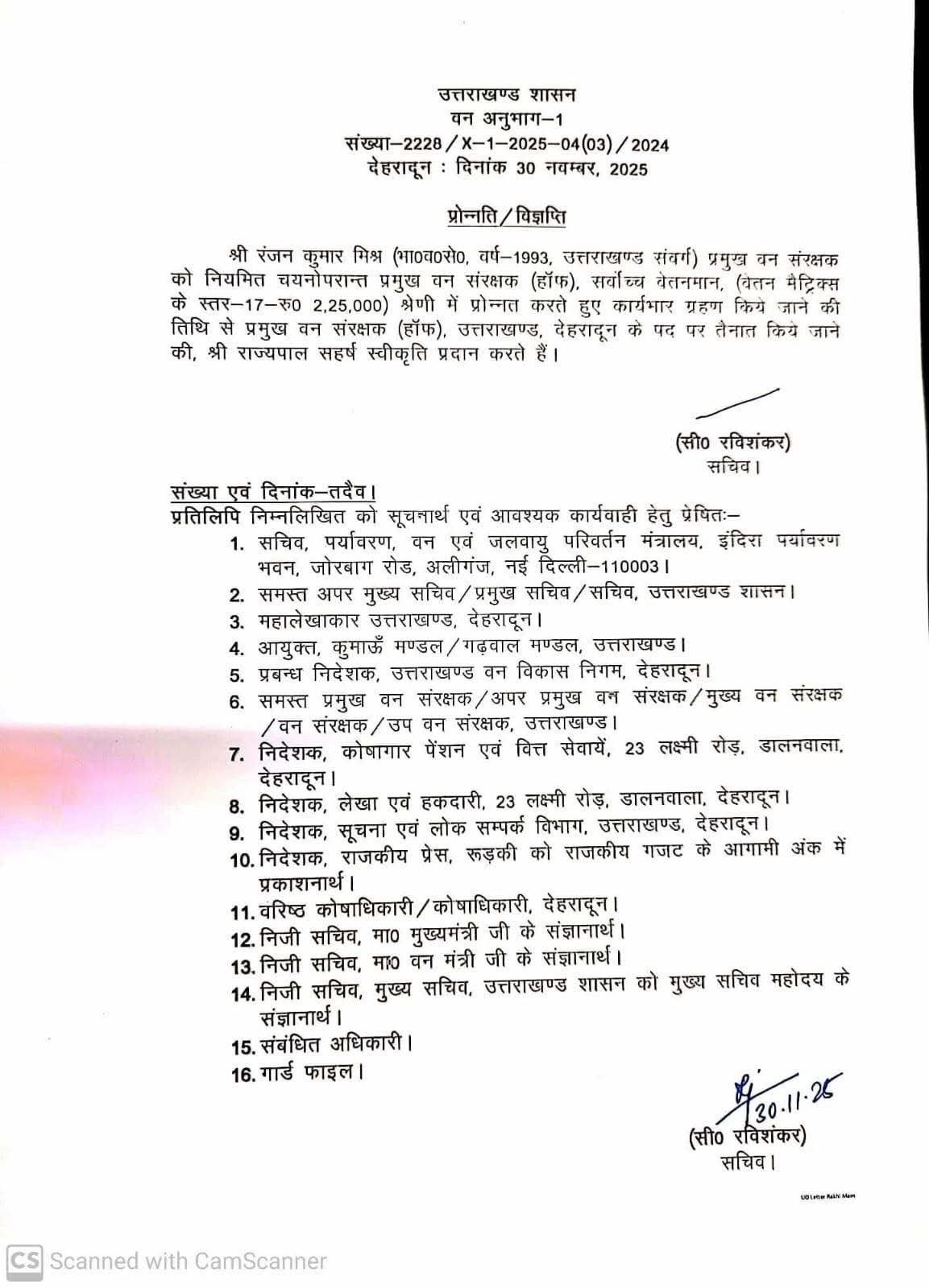 IFS अधिकारी रंजन कुमार मिश्र बने उत्तराखंड वन विभाग के नए मुखिया
